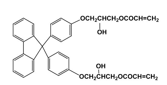 環氧丙基雙酚芴*酯,學名又叫 9,9-雙[4-(2-*酰氧基乙氧基)苯基]芴,分子式為C37H36O8,分子量608.358 g/mol。